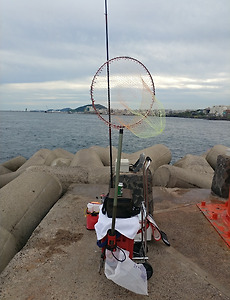 제 낚시 장비, 소품들입니다. 이 방파제엔 마대자루가 비치되어 있습니다. 마을 주민께서 관리하시나 봅니다. 덕분에 주변이 그나마 깨끗한 편입니다. 장비 목록들을 나열해보면... 접이식 수레 : 모든 장비들이 수레바퀴 두 개에 의지해 방파제 위를 오고갑니다. 메이호 7000 또는 9000 장비통 : 낚시소품, 젯보일sol, 가스, 기포기, 가위, 가끔 도마 등을 넣어 다니고 있고요. 겉에 Coleman, Petromax, Jet Boil 등의 스티커를 붙였습니다. 45살림통 : 40밑밥통 넣고 두레박, 미끼통 두 개, 집게 등. 보냉 가방 : 생수, 맥주, 간식 등. 낚시에서 잠시 물러나 캔맥주나 음료수를 한잔 할 때 많은 생각이 스쳐지나갑니다. 집착낚시, 전투낚시에 빠져든 제 모습을 반성하기도 하고요. ..